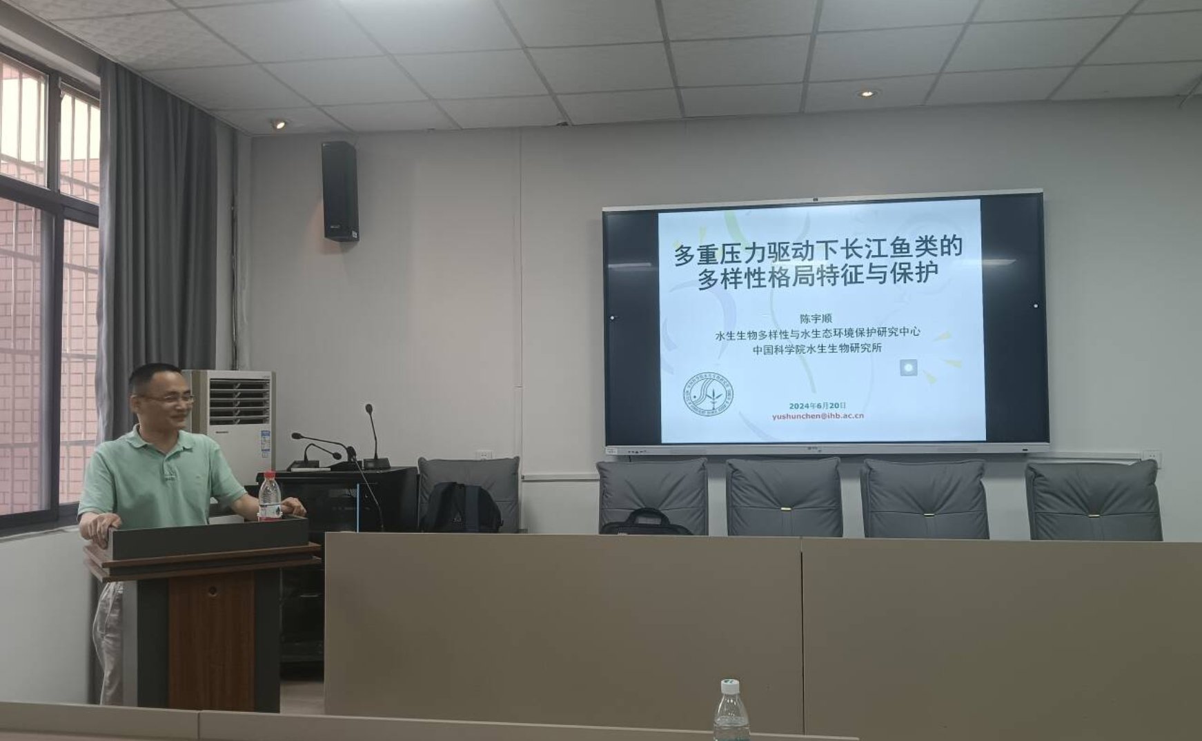 6月20日,国家渔业资源与水生态保护青年人才,中国科学院水生生物研究所水生态系统健康研究组组长,水生生物多样性与水生态环境保护研究中心副主任陈宇顺研究员应邀在我院生物楼学术报告厅以“多重压力驱动下长江鱼类的多样性格局特征与保护”为题向学院师生做了一场精彩的学术报告。