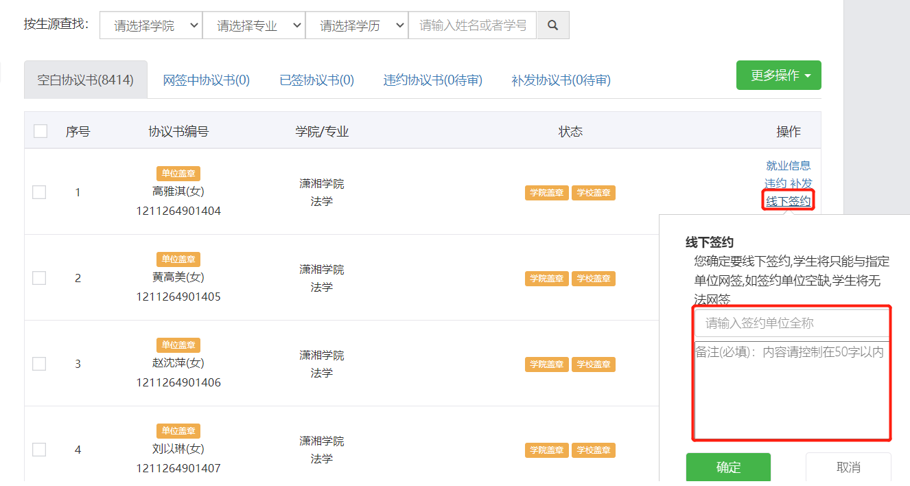 “线下签约”操作指引(学院)