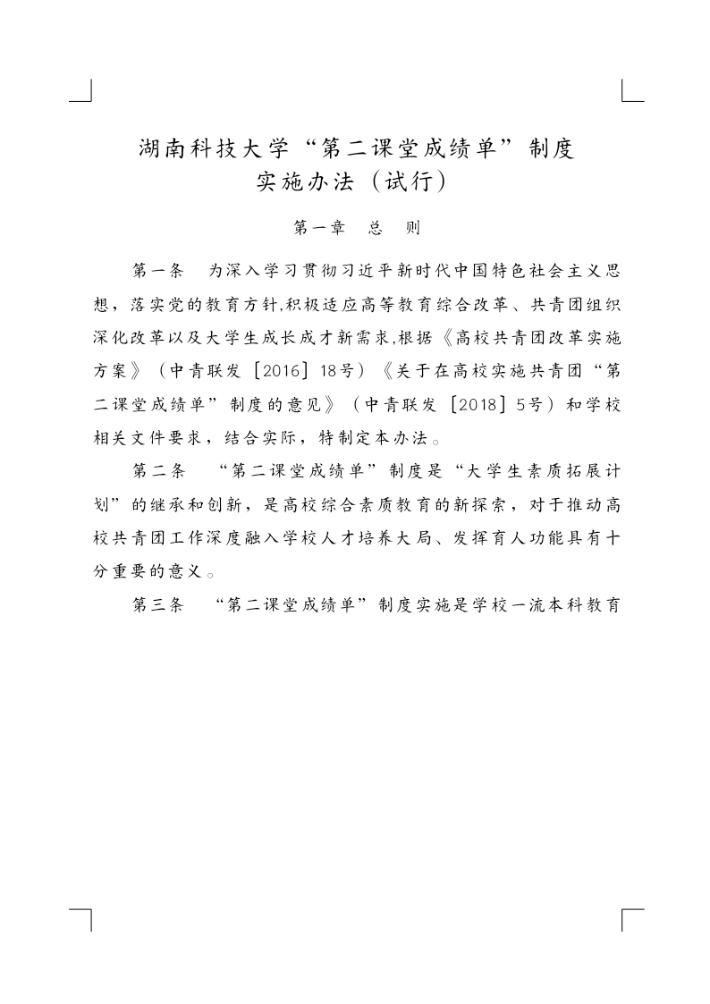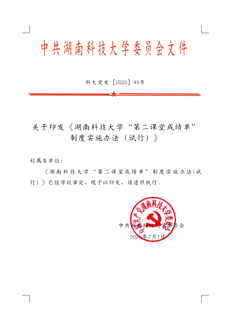 湖南科技大学“第二课堂成绩单"制度实施办法(试行)
