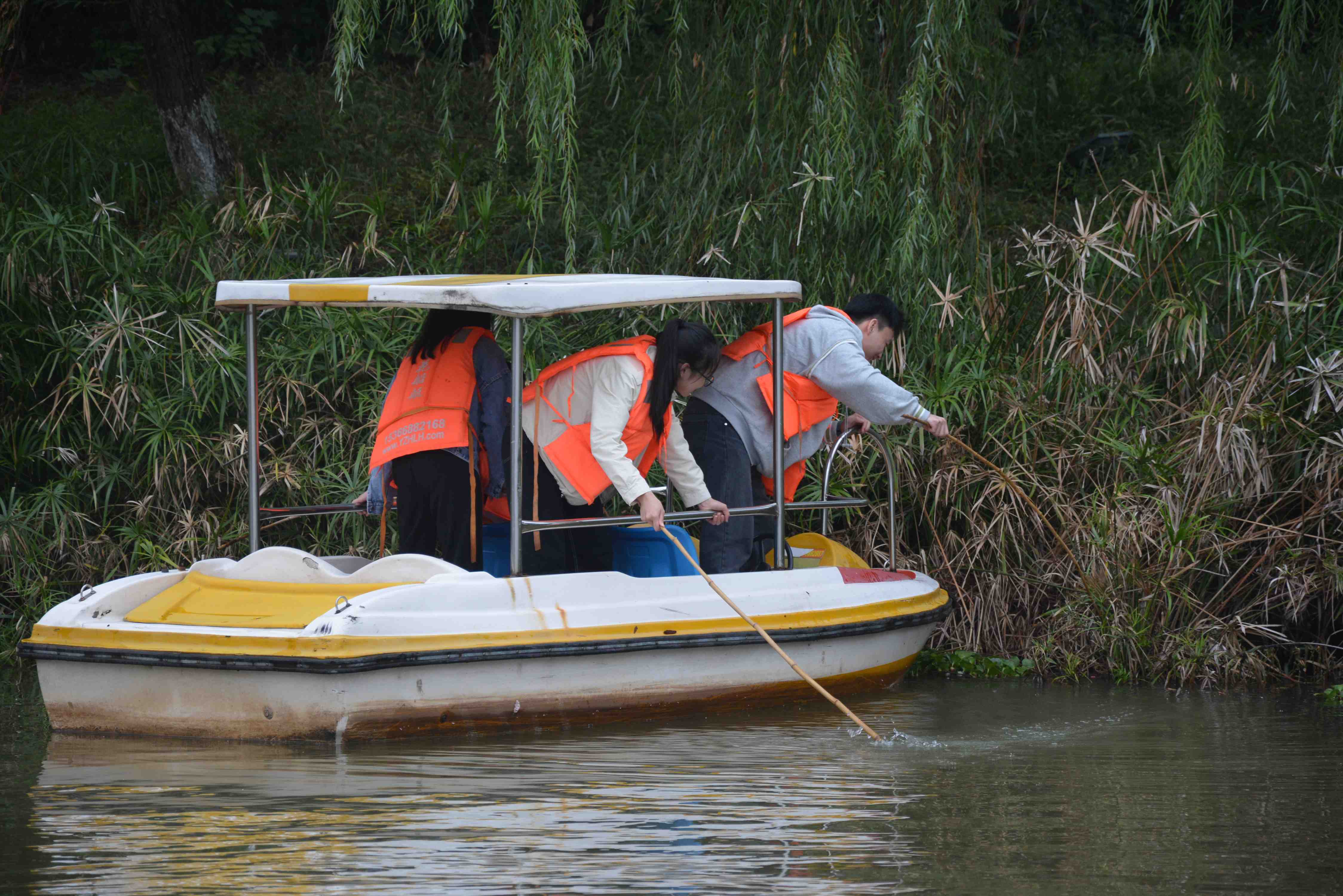 行动小组规模超过30人,两支水面摘捞组为主力乘打捞船在九华湖水域集中摘捞福寿螺,其余人员在区河长办工作人员的指导下在湖边用网兜开展打捞工作。我院的志愿者们主要在水面上进行摘捞工作,他们穿着救生衣,拿着工具,在船上与福寿螺“战斗”。本次活动由社会各界人员组成,并在活动之初由我院的志愿者向大家介绍了福寿螺的相关知识,增强了群众对福寿螺危害的认知和鉴别力,同时掌握对福寿螺防治措施等知识。