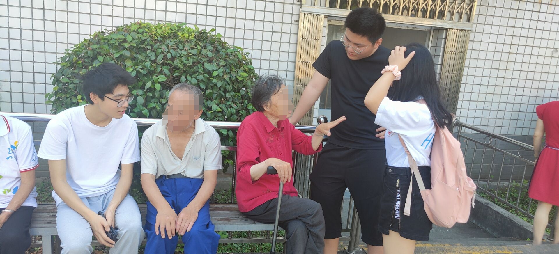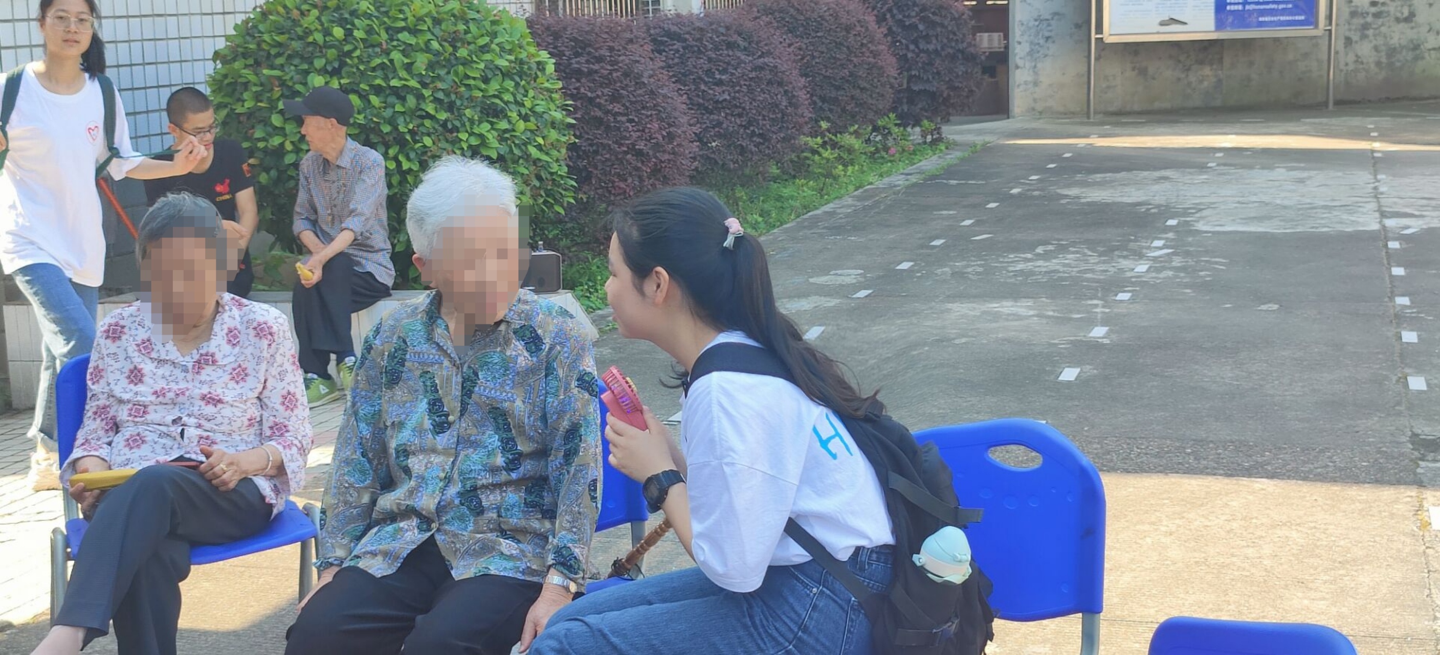 这天阳光明媚,早晨七点四十五,青年志愿团在北校门口集合完毕,乘坐公交车来到了市中心鹤龄敬老院。一进入敬老院,映入眼帘的是老人们慈祥的笑脸,她们有些已早早的起来了坐在阴凉处聊天唠嗑,有些在树荫下做锻炼,看见我们来了,纷纷朝我们招手问好。给爷爷奶奶问好后,我们拿出提前给爷爷奶奶们准备好的水果分发给她们,坐在她们的身旁,倾听与诉说着属于彼此的故事。我们也来到了爷爷奶奶的房间里,帮她们打扫卫生整理房间。
