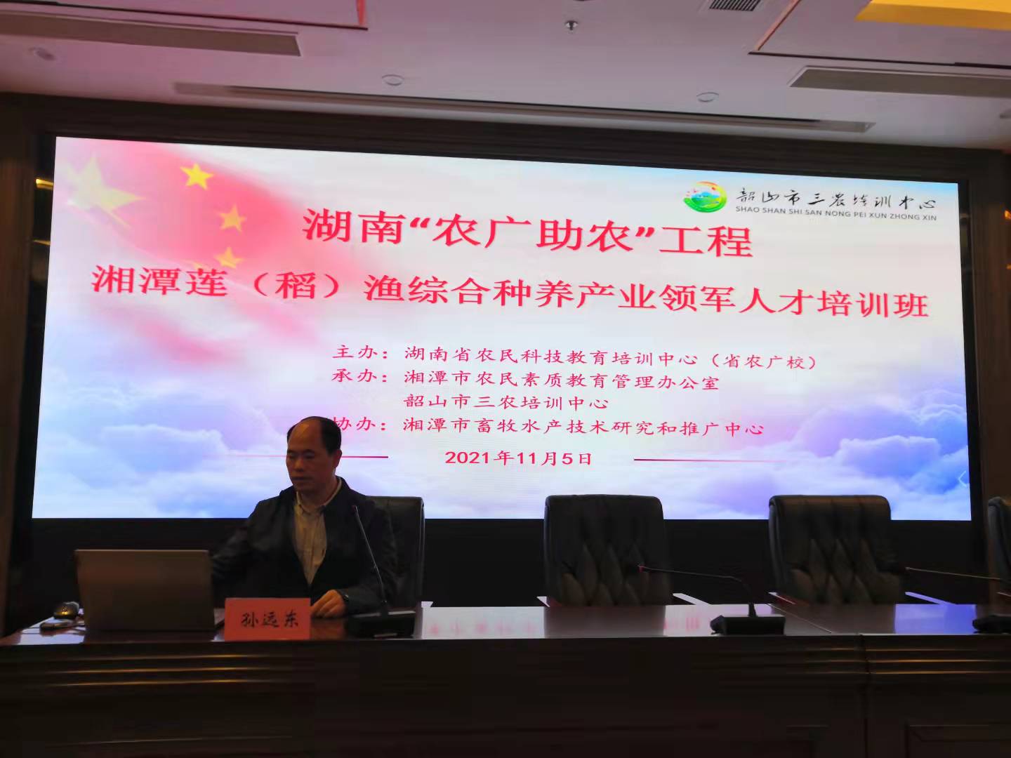 2021年11月5日,生命科学学院孙远东教授应邀给“湖南‘农广助农’工程湘潭莲(稻)渔综合种养产业领军人才培训班”学员授课。