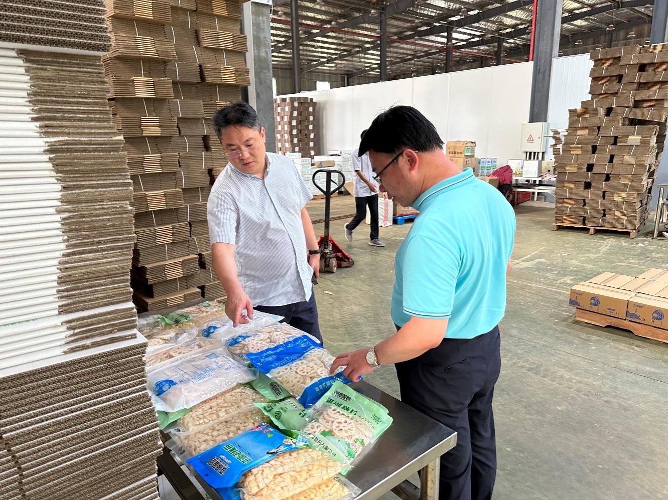 郭时印一行随后走访调研了湖北省洪湖市莲都生态农业有限公司,走访了该公司莲渔生态种养基地,参观了预制菜、藕粉和莲子生产加工车间。通过座谈交流,详细了解洪湖市莲渔生态种养全产业链发展现状。